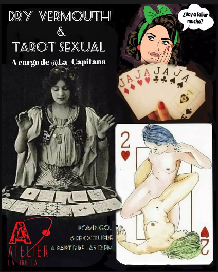Una vez más, el domingo 8 de octubre volveremos a gozarlo, con espirituosos mediante🍸 ya ritmo añejo y sabrosón, en una edición especial en la que podremos contar con los servicios de una de nuestras brujitas 🧙♀️ de guardia (@La_Capitana) y su tarot sexual en el AtelierlaOrbita.
