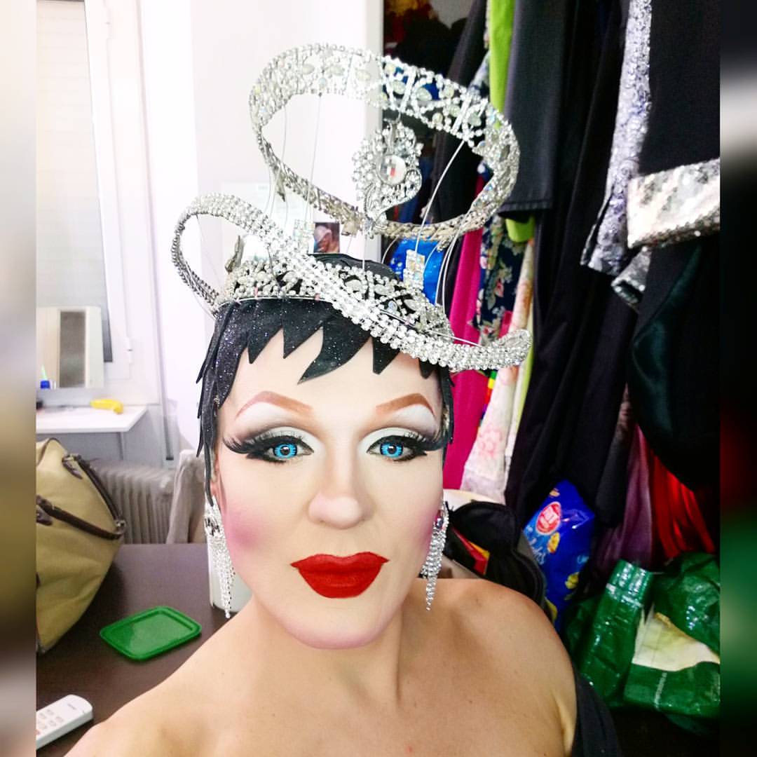 Hay días que me maquillo en una hora y ha salido bien, normalmente 2 h y media… otros días hago 3 y sale una mierda… cuando hay una caracterización, Cher o Marilyn, tardo más, no por el maquillaje sino por ese ritual… me pongo una música, mi mate… y todo eso desde que entras hasta que sales al escenario es un ritual. Puede que no sea idéntico, pero la gente se lo cree.
