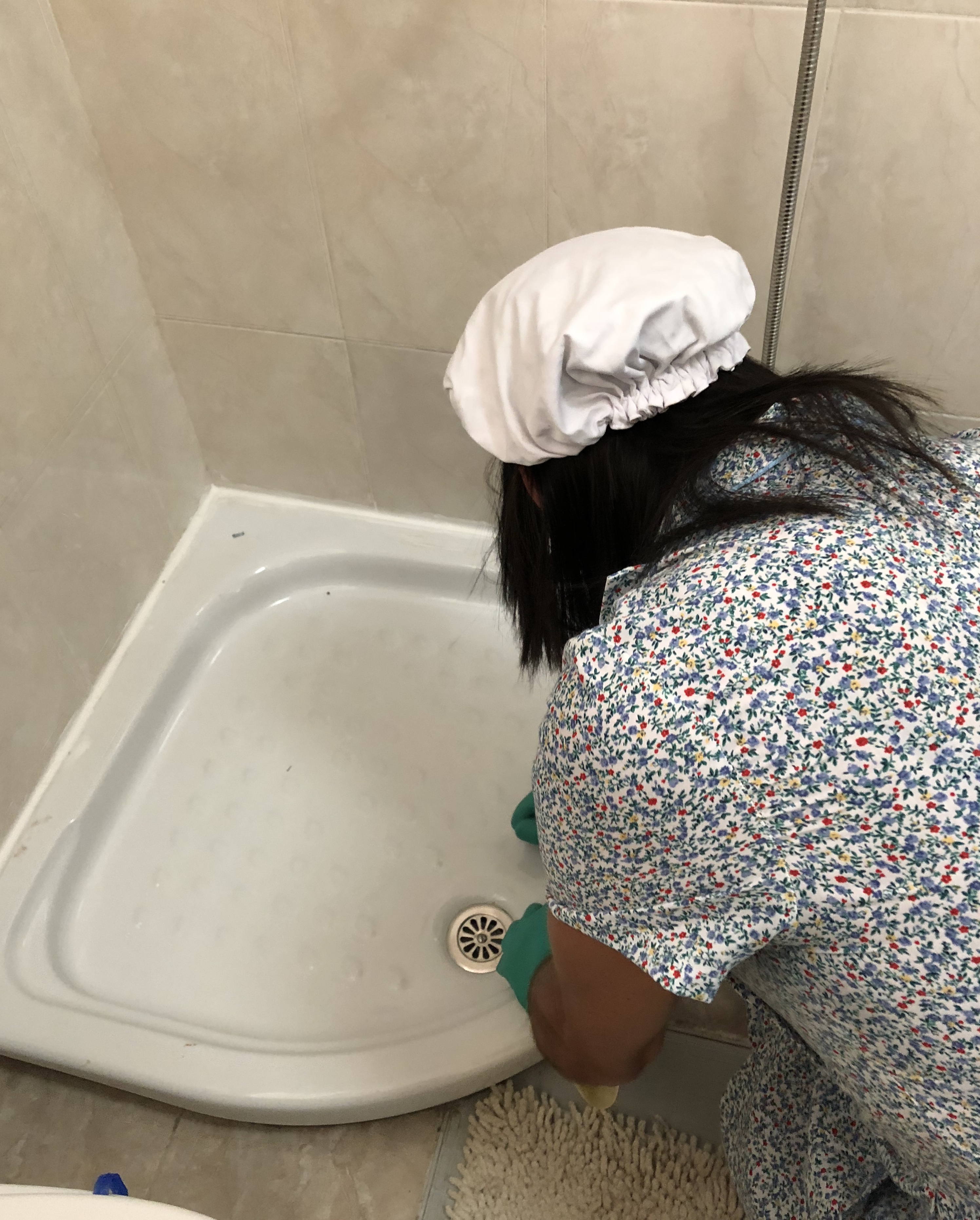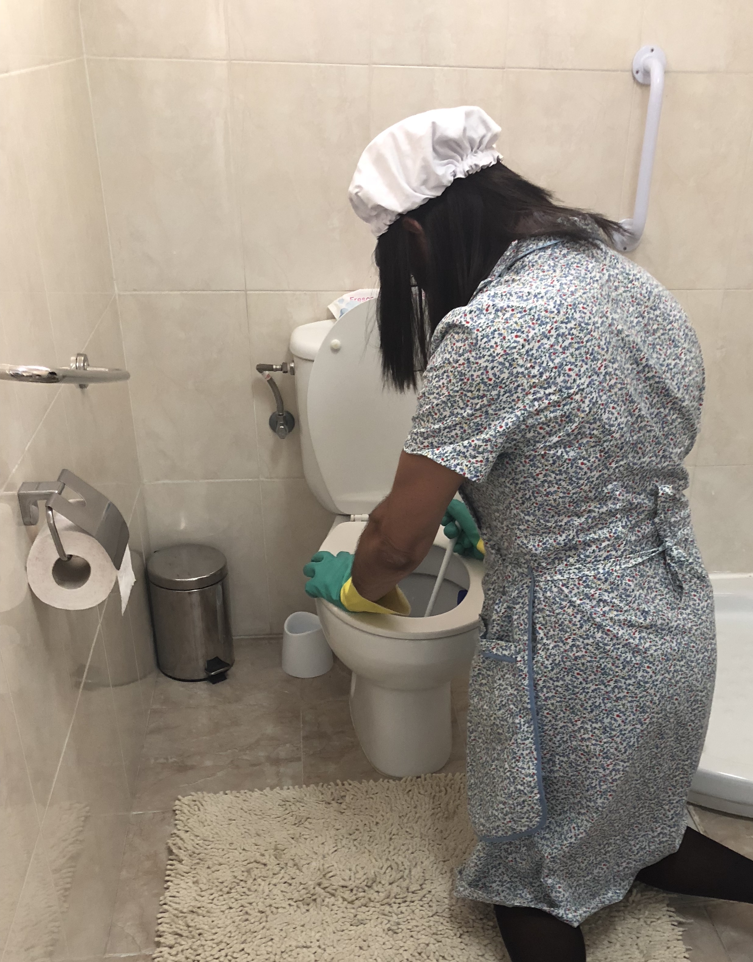 Era una tarde cualquiera, me encontraba desempeñando las tareas que me ordenó mí Señora, una vez que le había saludado protocolariamente, cogí todo lo necesario para poder realizar correctamente mi labor, concretamente, me ordenó realizar una limpieza a fondo, la de su cuarto de baño. Saqué del cuarto de baño, todo lo que me podría molestar o estorbar y lo puse en el pasillo, pegadito a la pared, ordenando, para no molestar innecesariamente; a mí me gusta estar, pero que no se note mi presencia, por lo que siempre estoy atenta, por si mi Señora reclama mi presencia, y también estoy muy pendiente y atenta de no dejarme por medio mis útiles de limpieza, incluso cuando estoy realizado las tareas.