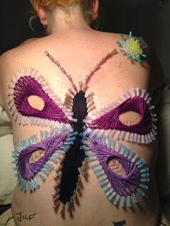Desde hace tiempo he sentido muchísima curiosidad por esta práctica que no es mas que juego con agujas, se trata de perforar la piel de la persona sumisa, con formas y diseños específicos o no, teniendo mucho cuidado y atención con ciertas cosas. En los últimos meses he trabajado mucho con agujas y mientras mas tiempo pasaba mas curiosidad me daba, estuve un tiempo leyendo al respecto y como tengo ya experiencia usando agujas con otros seres vivos xD decidí atreverme conmigo, lo hice por primera vez con una sola agujay poco a poco con el tiempo, fui aumentando la cantidad de agujas. La foto a continuación es de uno de esos momentos: